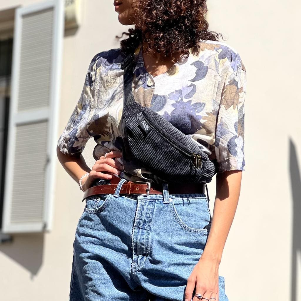 Black Corduroy Roni Fanny Pack