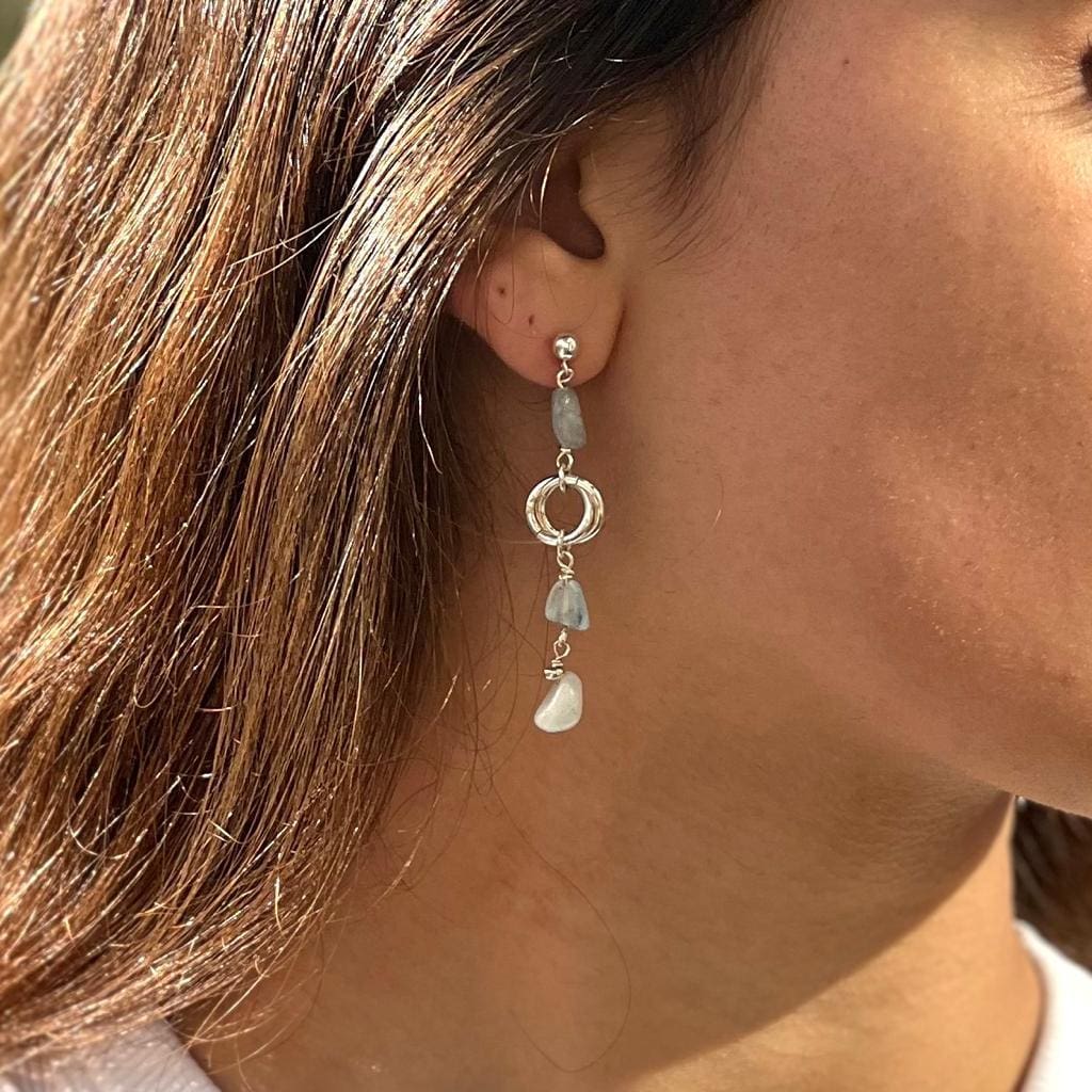 Earrings made of 925 silver combined with aquamarine gemstones. Elegant and classic earrings, with a delicate and regal presence.
