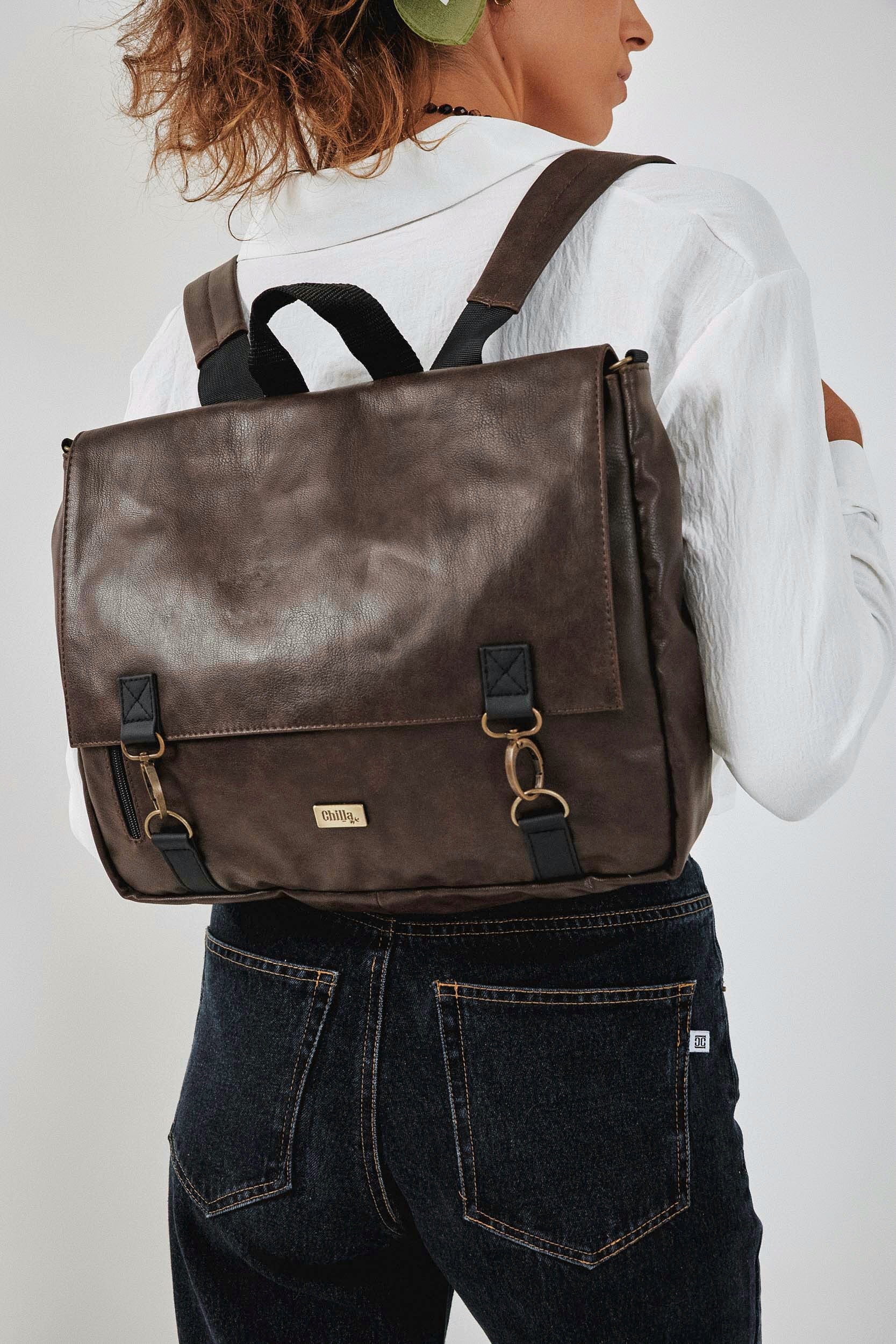 Brown Vegan Leather Large Jaffa Convertible Bag