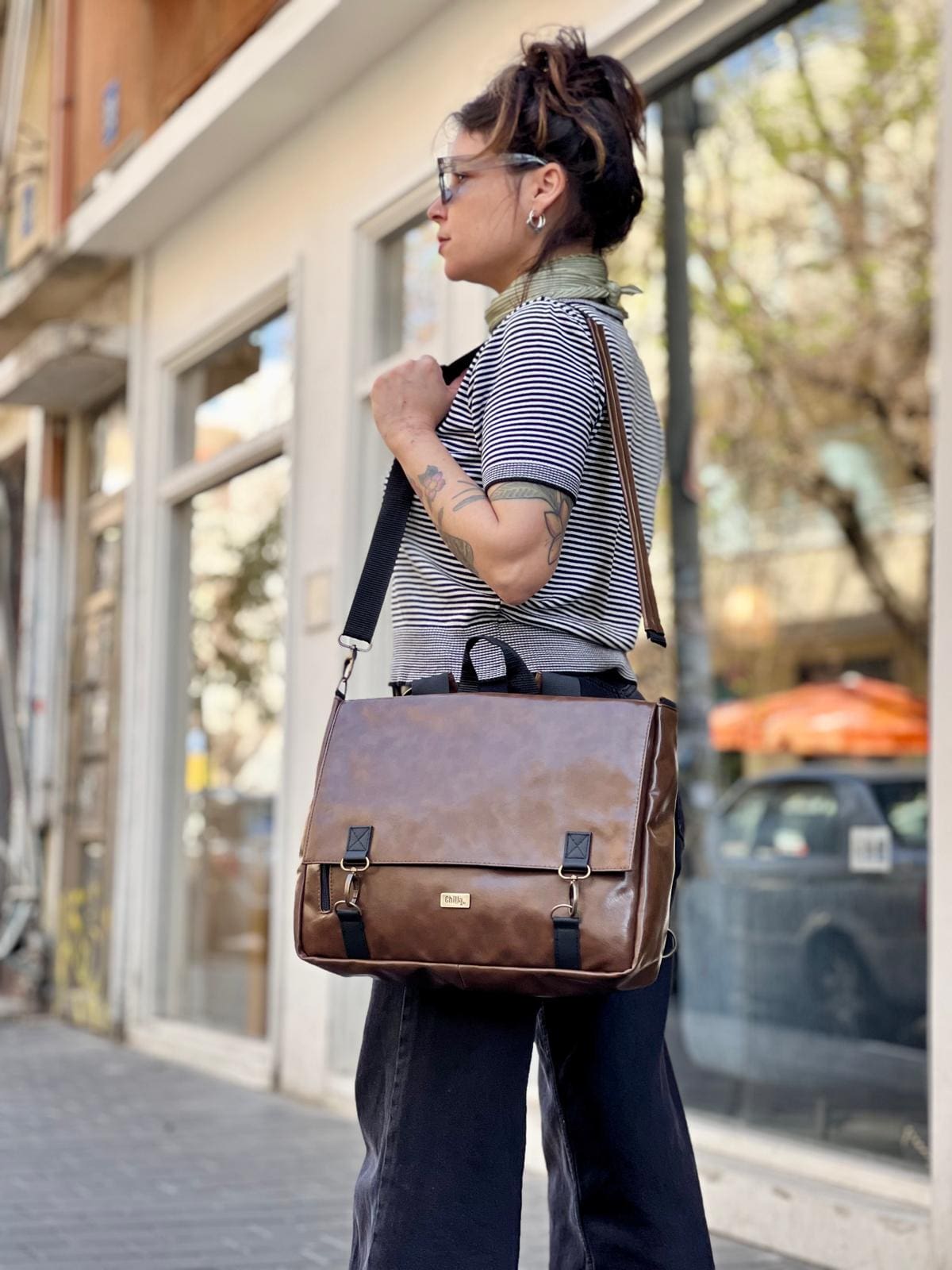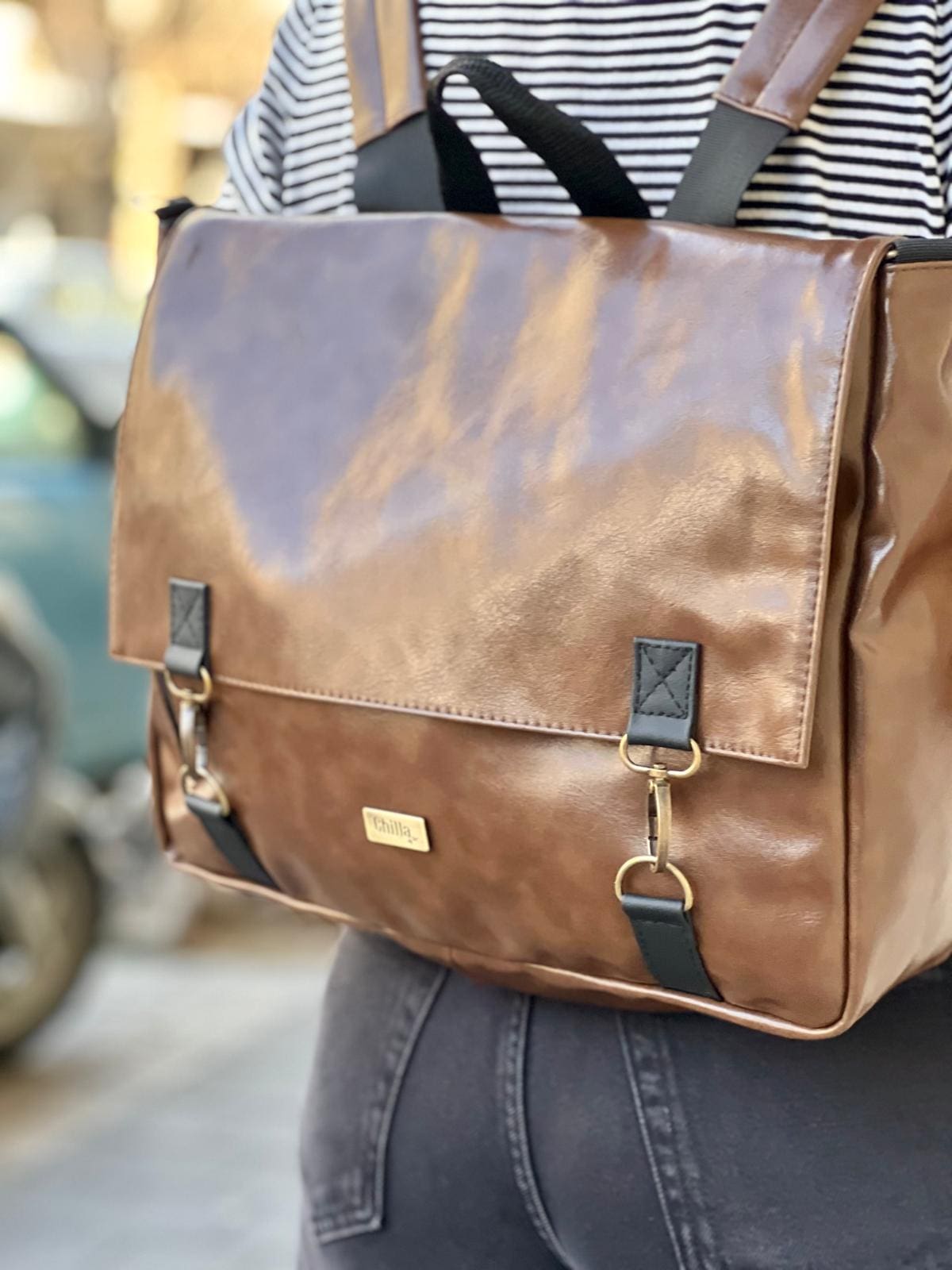 Glossy Brown Large Jaffa Convertible Bag
