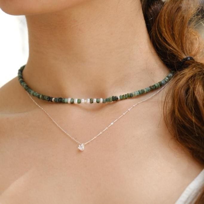 A necklace with a delicate and elegant presence, made of 925 silver. You can shower and enter water sources without fear!