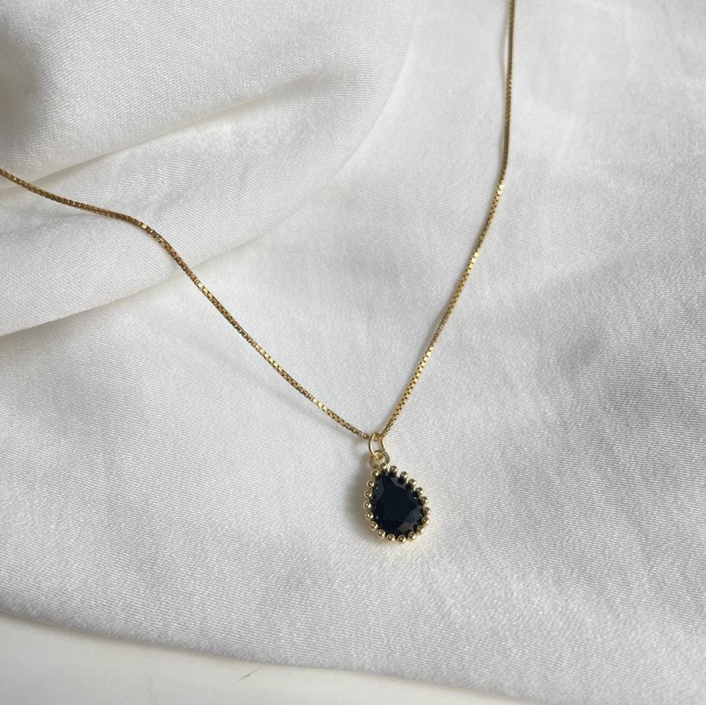 The necklace is made of gold-filled, the pendant has a black zircon made of two-micron plating.