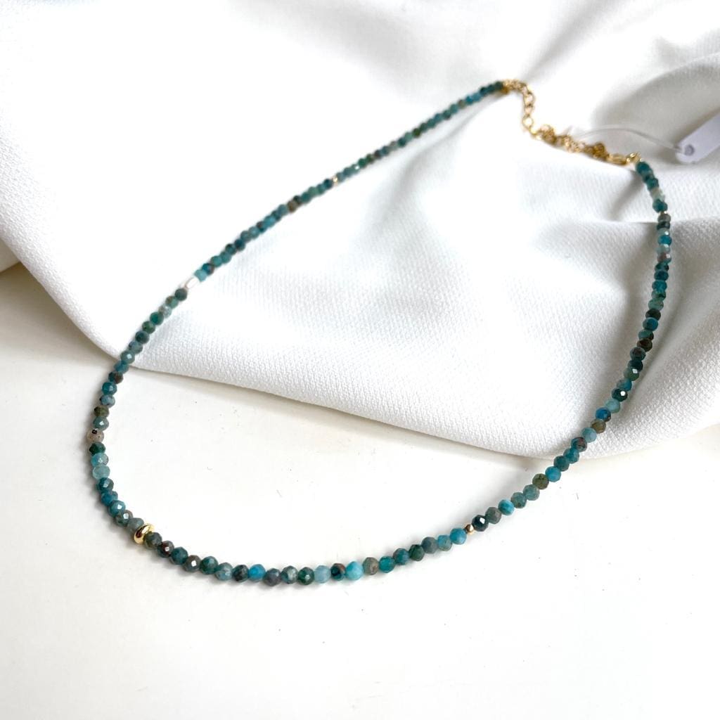 A stunning necklace in shades of ocean blue-turquoise, handmade, with beads made of gemstones.