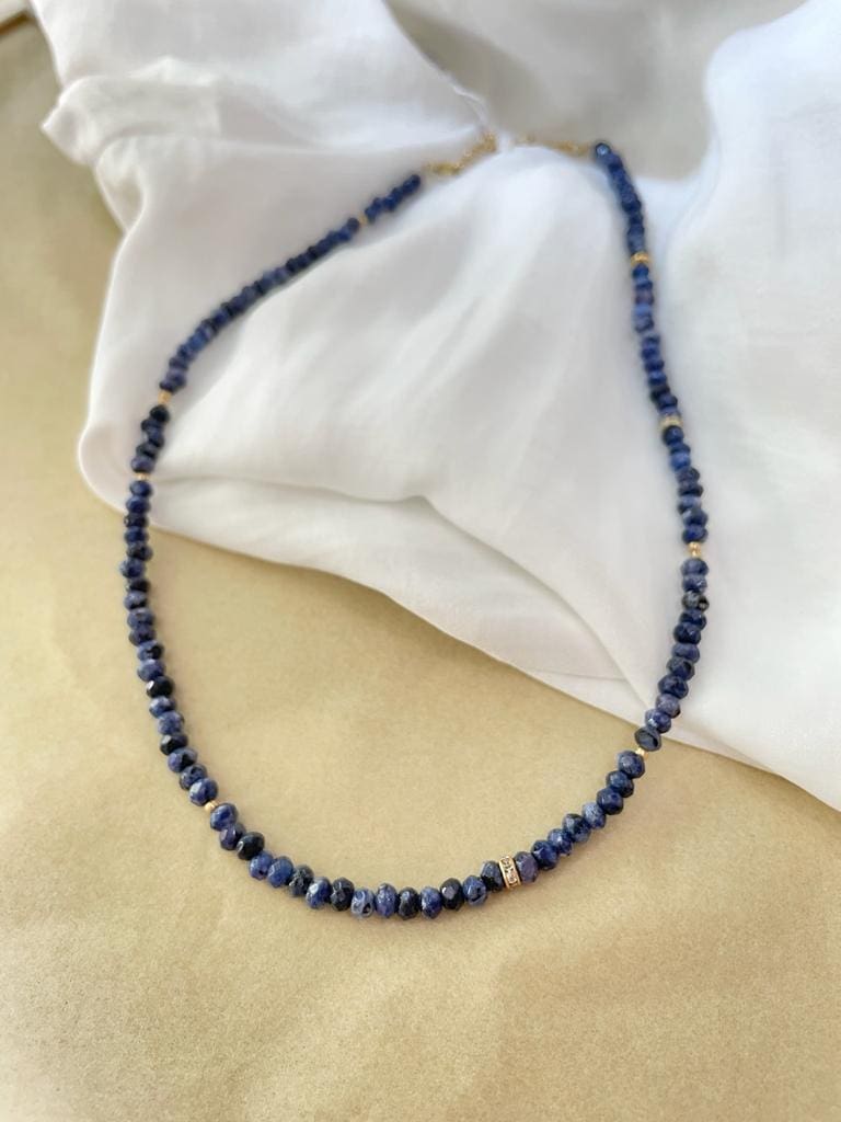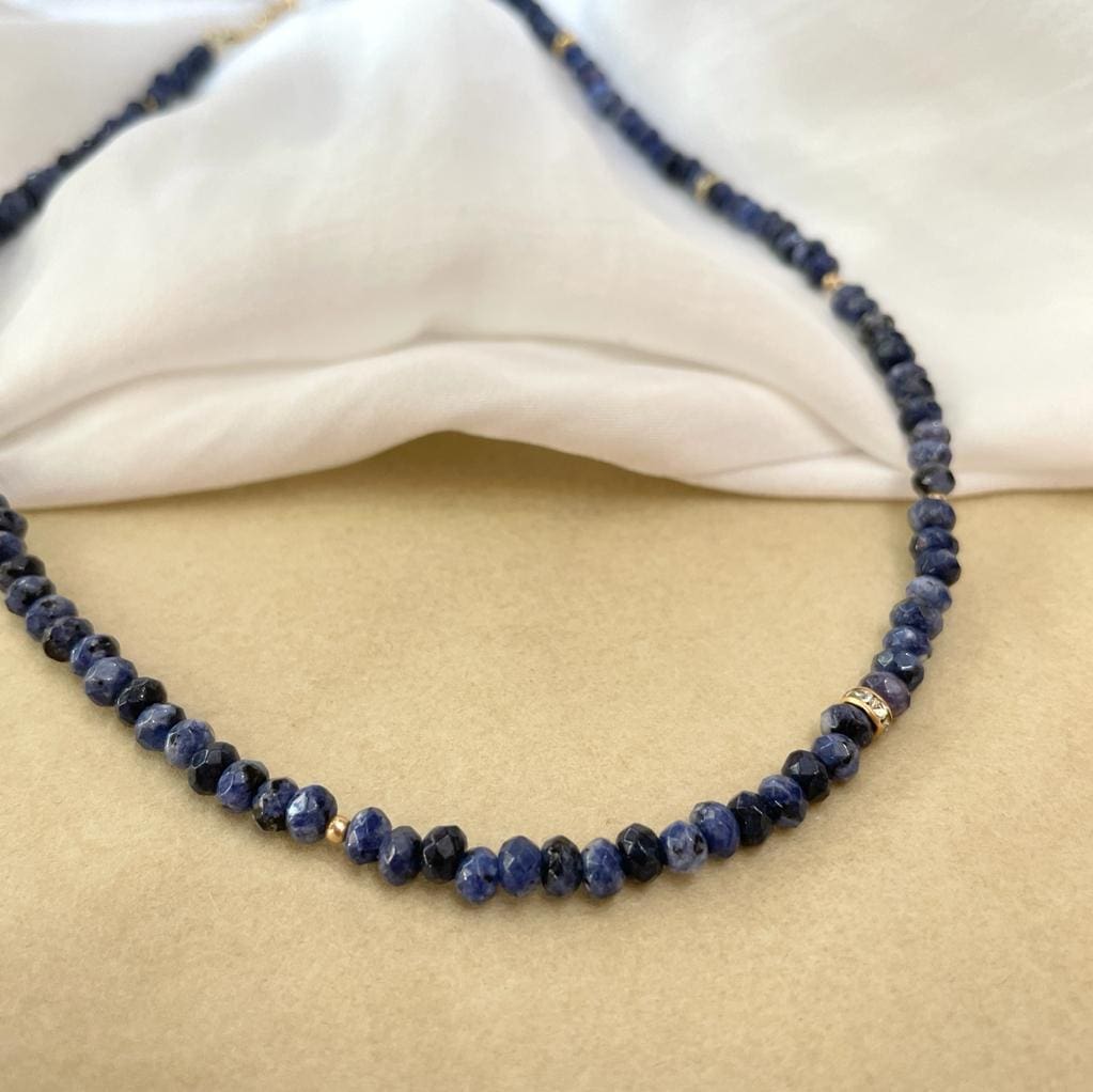 Necklace of mixed gemstone beads in shades of blue. Handmade.