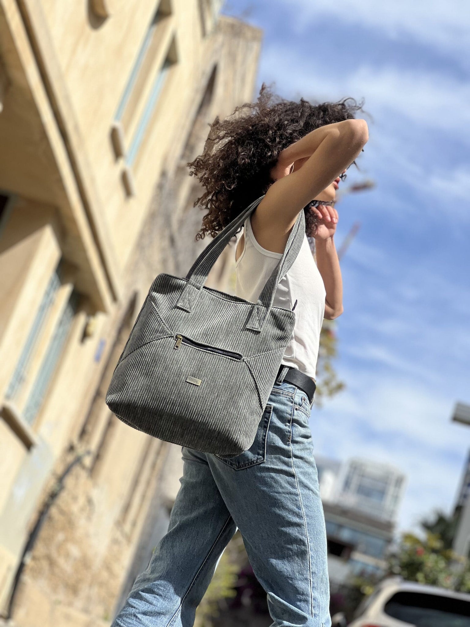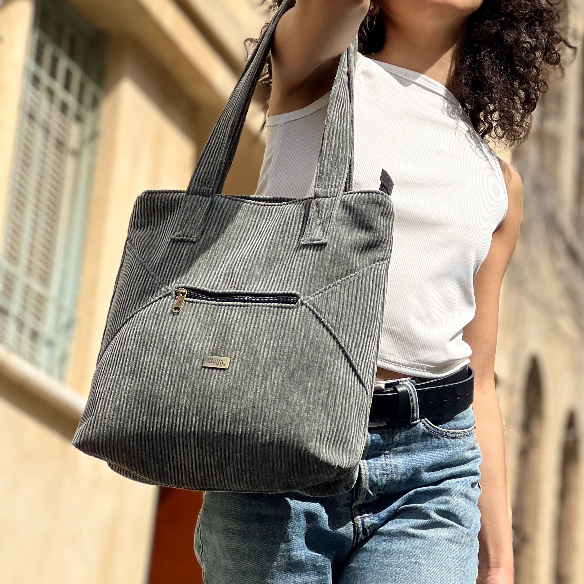 Green Gray Corduroy Tommy Shoulder Bag