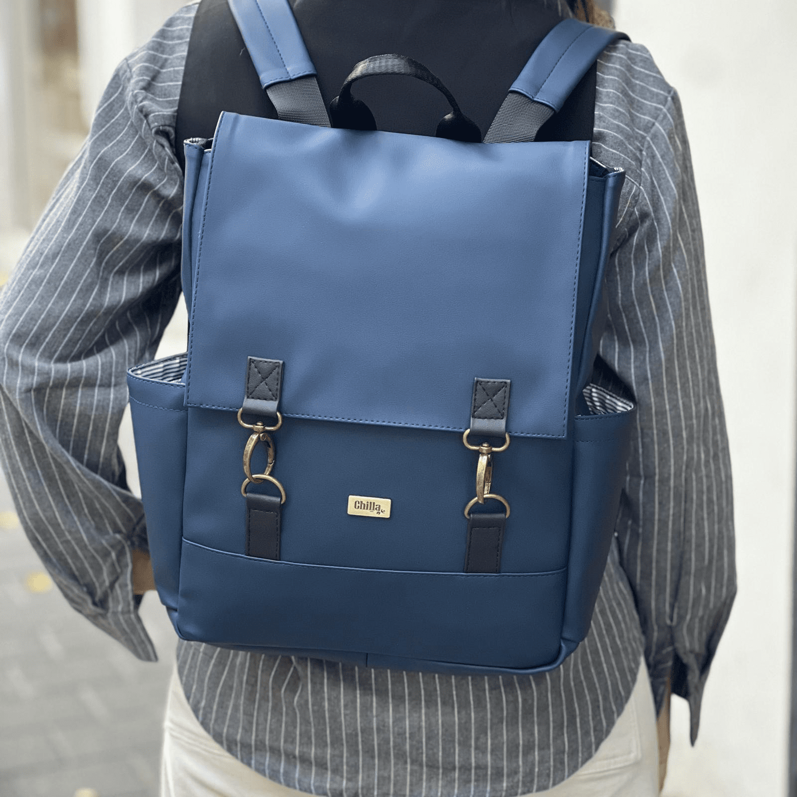 Most of our bags (leatherette and fabric) can be washed on a gentle cycle at 30°C for up to 30 minutes. It is important to remove the bag from the machine quickly to prevent the buckles from corroding.