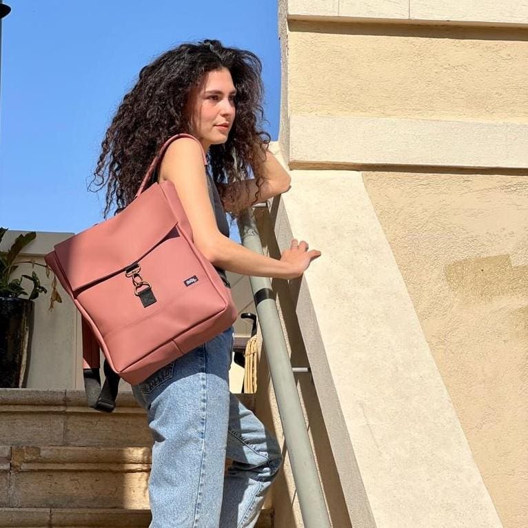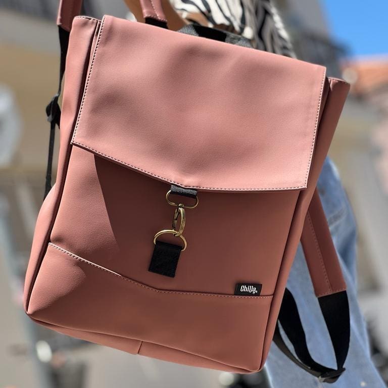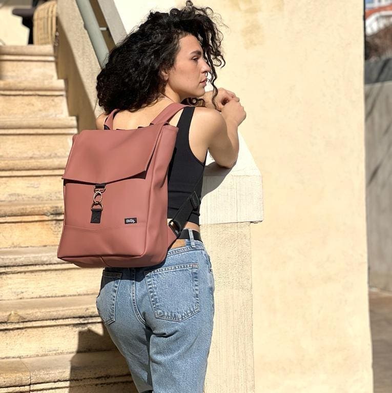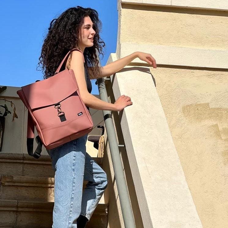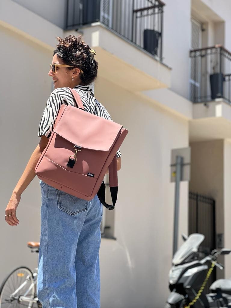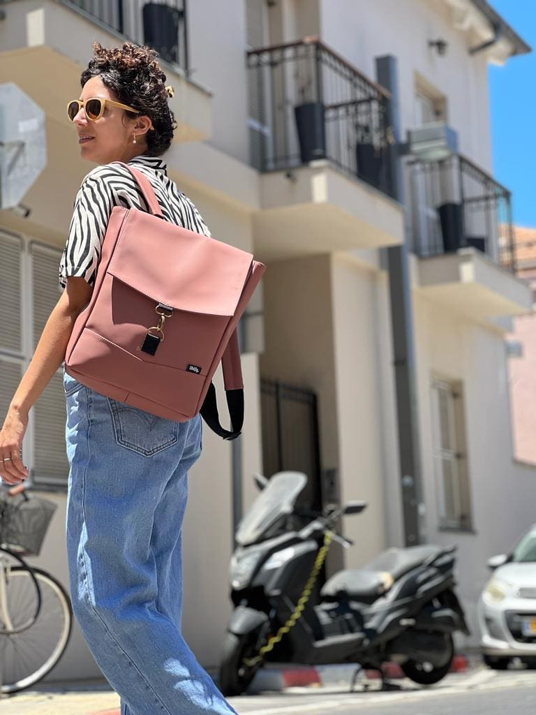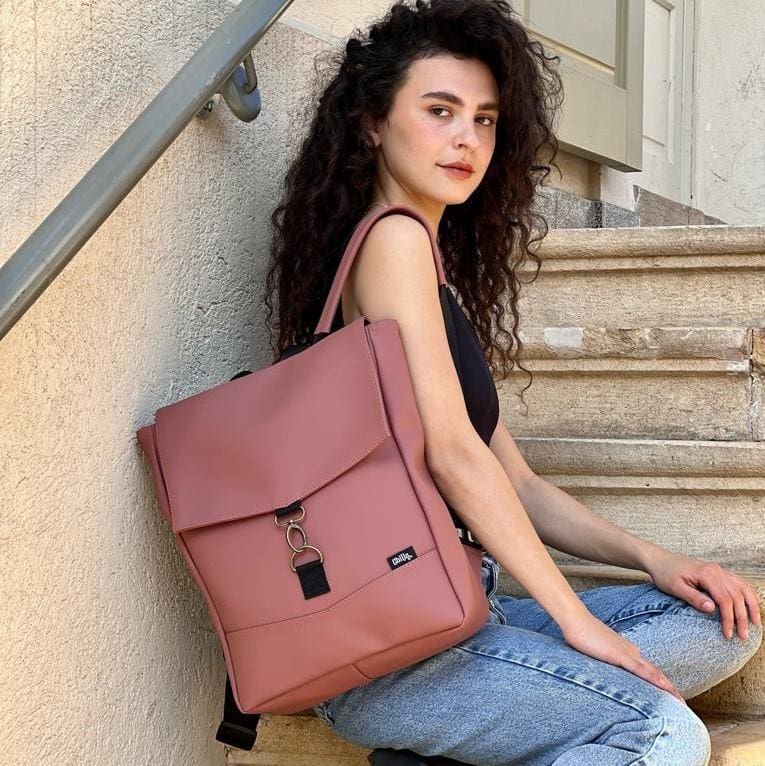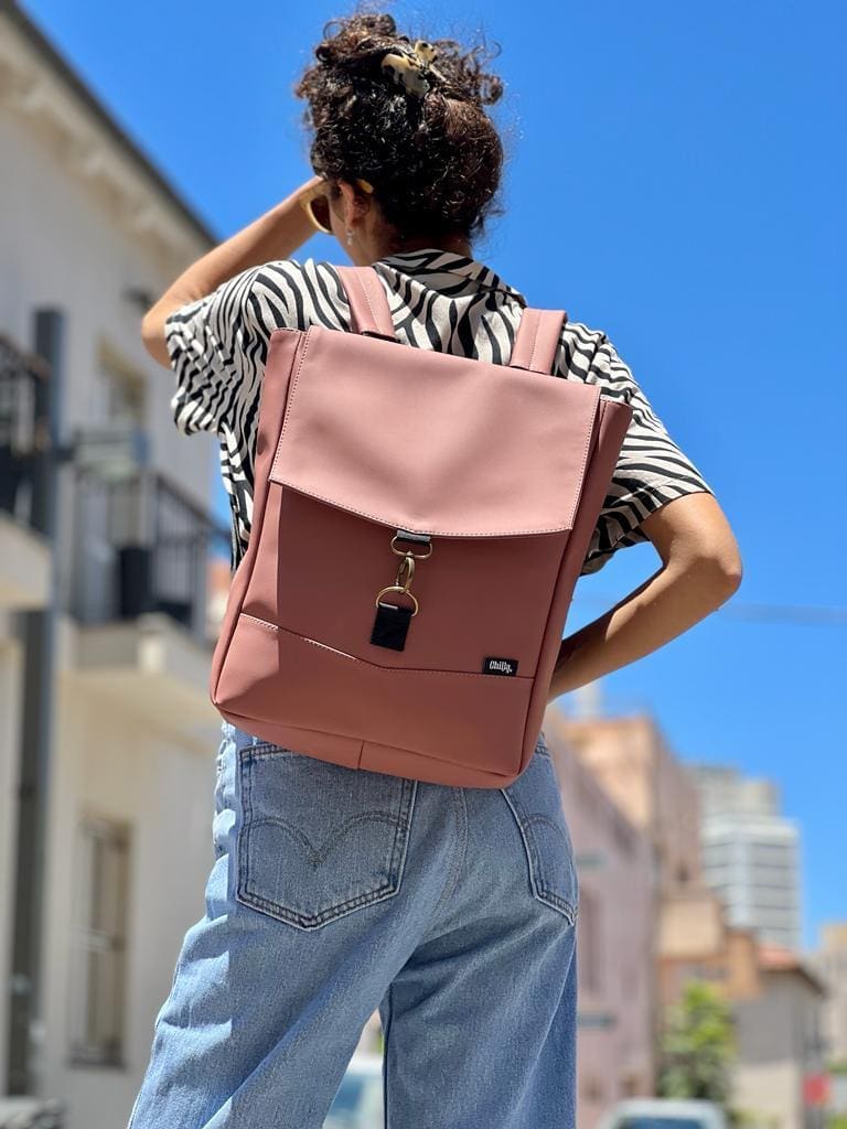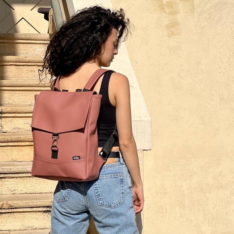 Medium Antique Pink Vegan Leather Students Backpack
